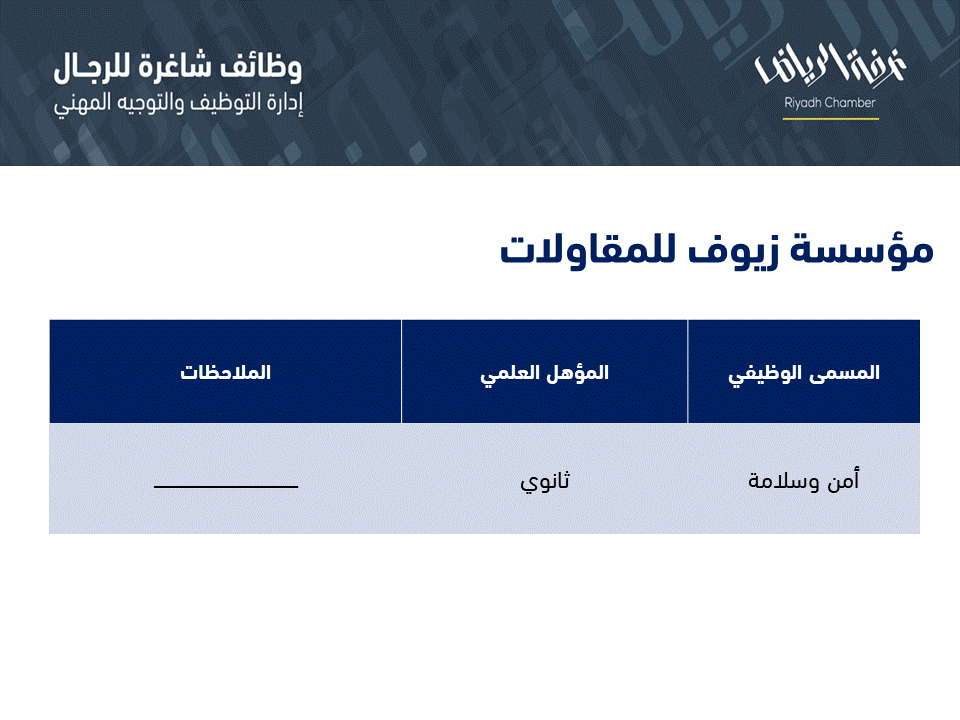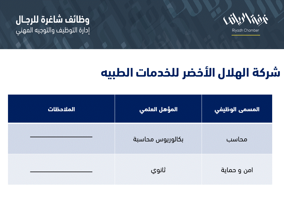 أعلنت غرفة الرياض بالتعاون مع شركات القطاع الخاص عن وظائف رجالية بالمسميات التالية