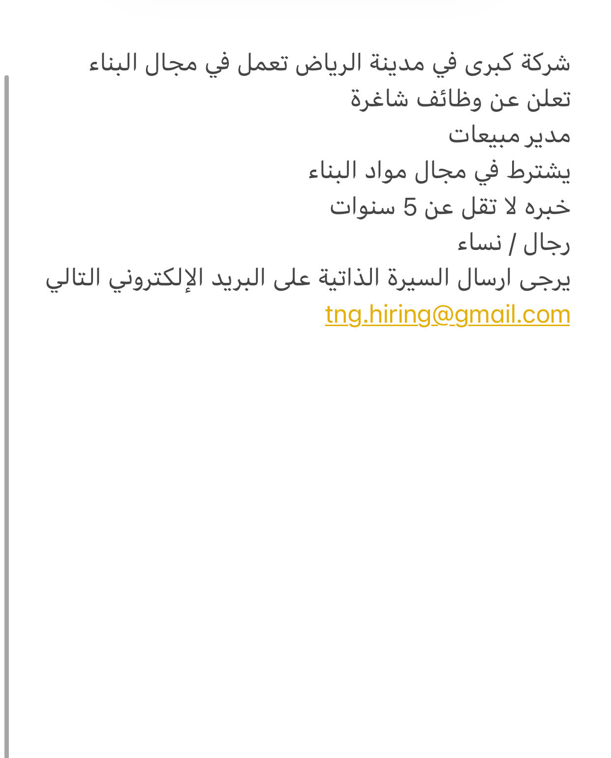 وظائف في الرياض مندوبي مبيعات ومدير مشتريات ومسؤول مبيعات