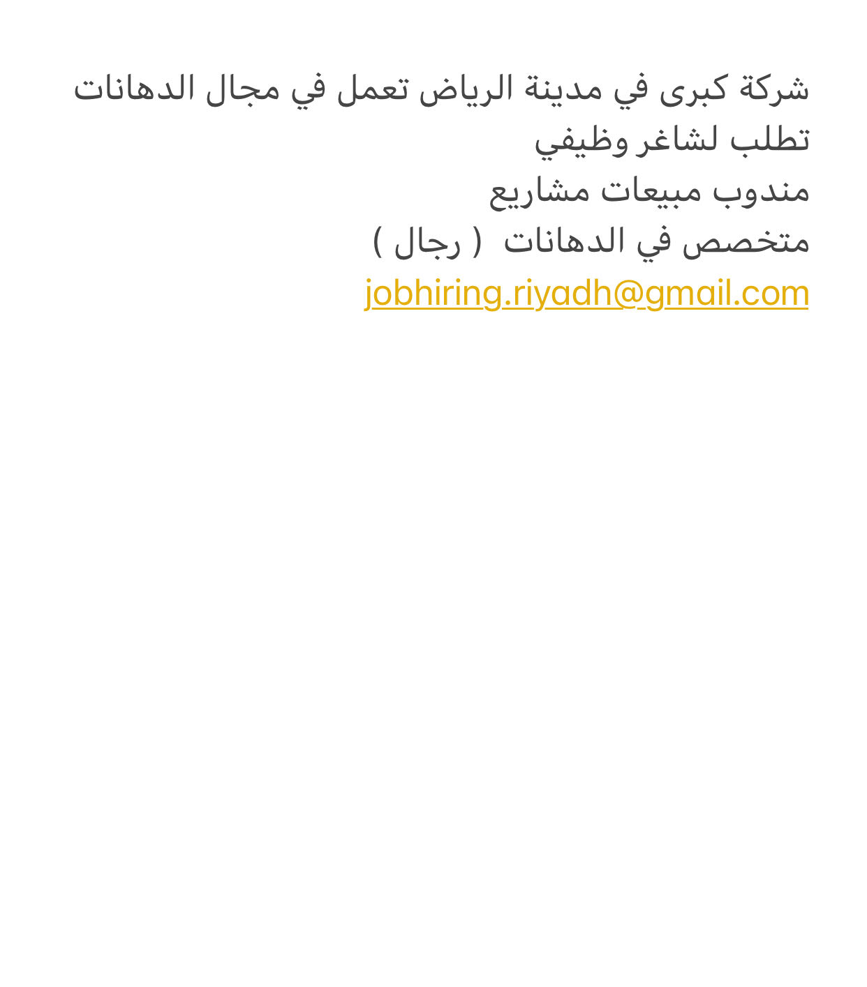 أعلنت شركة كبرى في الرياض تعمل في مجال الدهانات عن وظائف