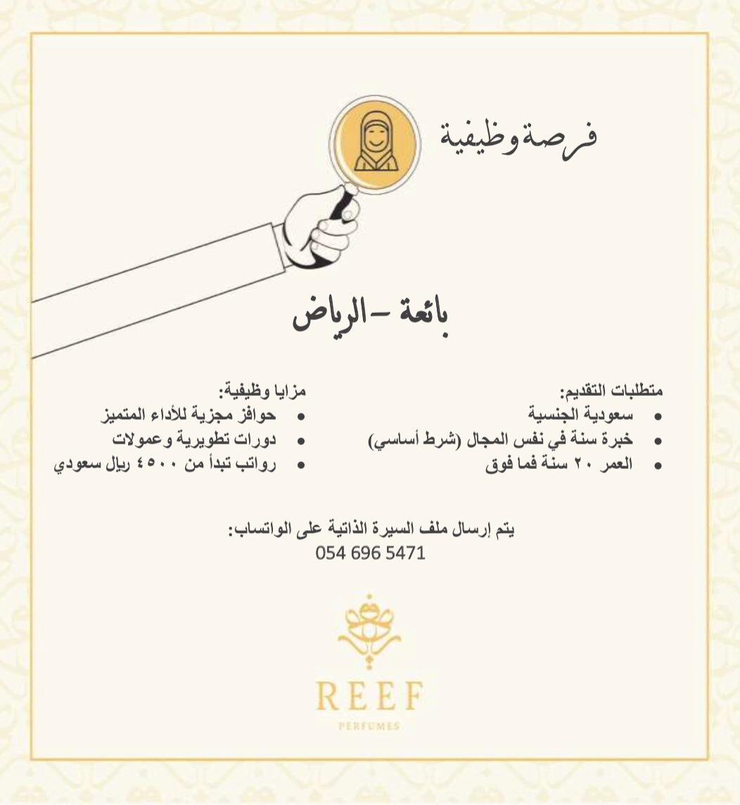 أعلنت شركة ريف للعطور في الرياض عن وظائف نسائية بمسمى