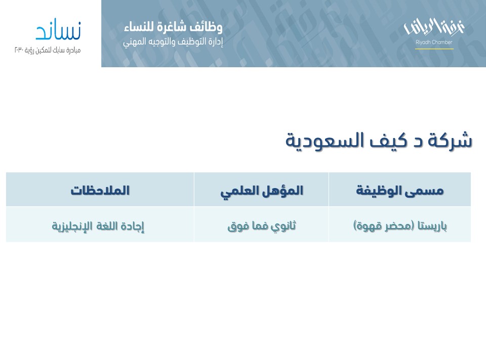 أعلنت غرفة الرياض بالتعاون مع د.كيف عن وظائف نسائية بالمسميات التالية