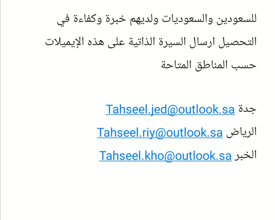 أعلنت احد جهات التحصيل في المملكة عن وظائف