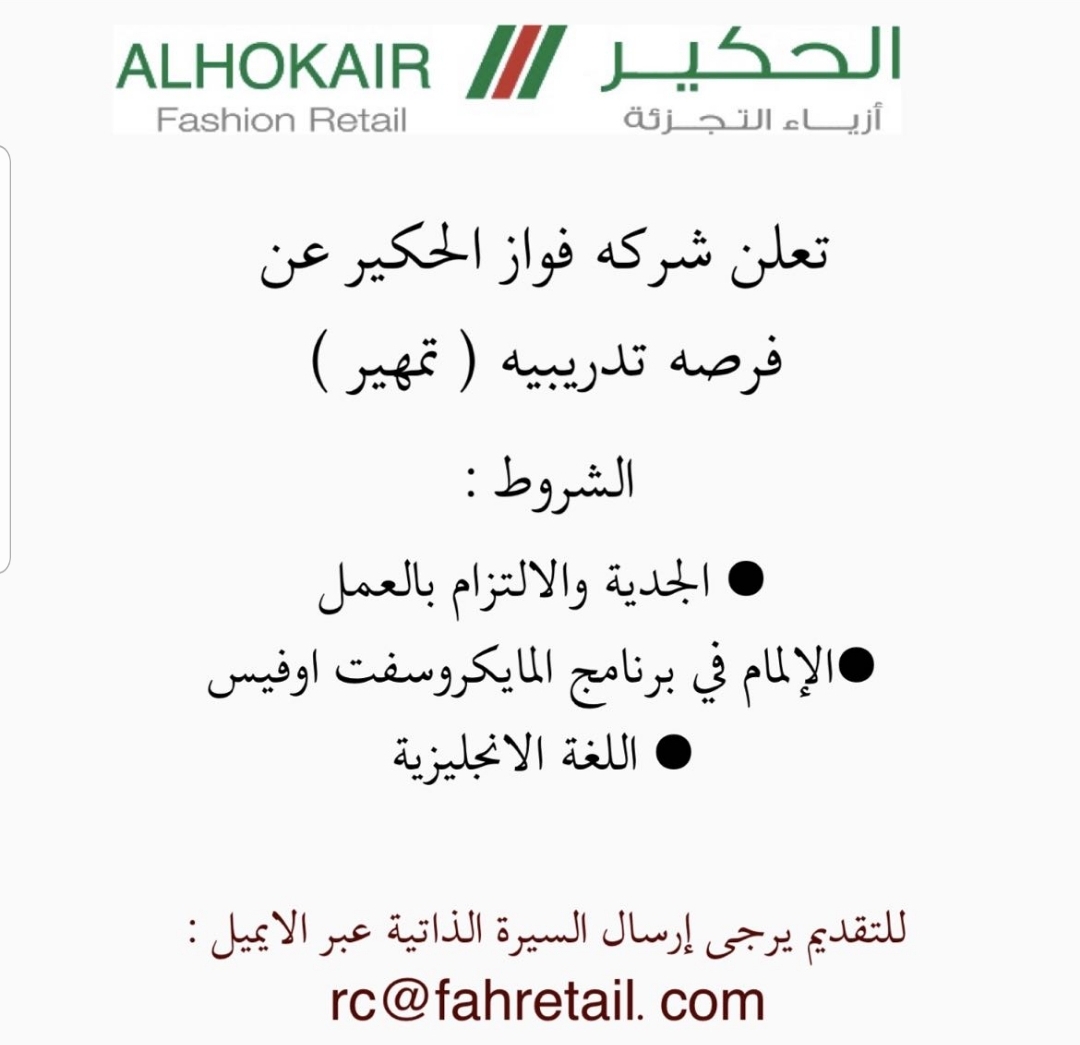 أعلنت شركة فواز الحكير عن فرص تدريبية تمهير