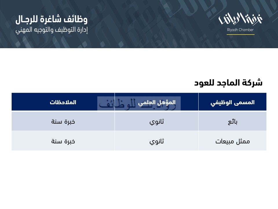 في أحدث وظائف غرفة الرياض أعلنت شركة الماجد للعود عن وظائف بالمسميات