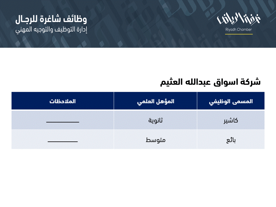 في أحدث وظائف غرفة الرياض أعلنت شركة اسواق عبدالله العثيم عن وظائف بالمسميات