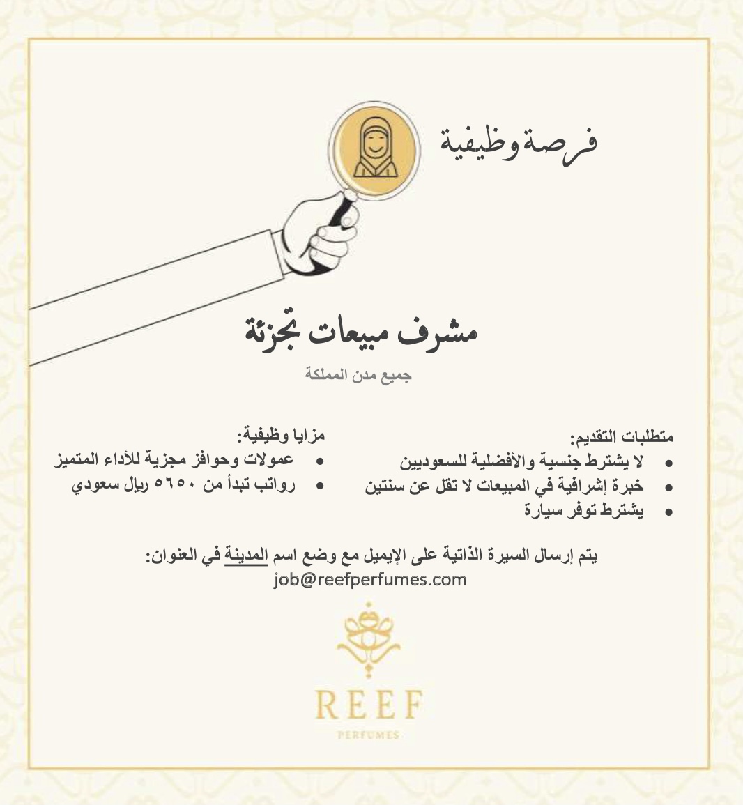 أعلنت شركة ريف للعطور عن وظائف بمسمى