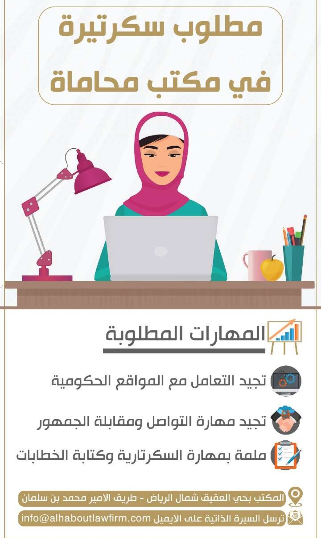 مطلوب سكرتيرة لمكتب محاماة في الرياض