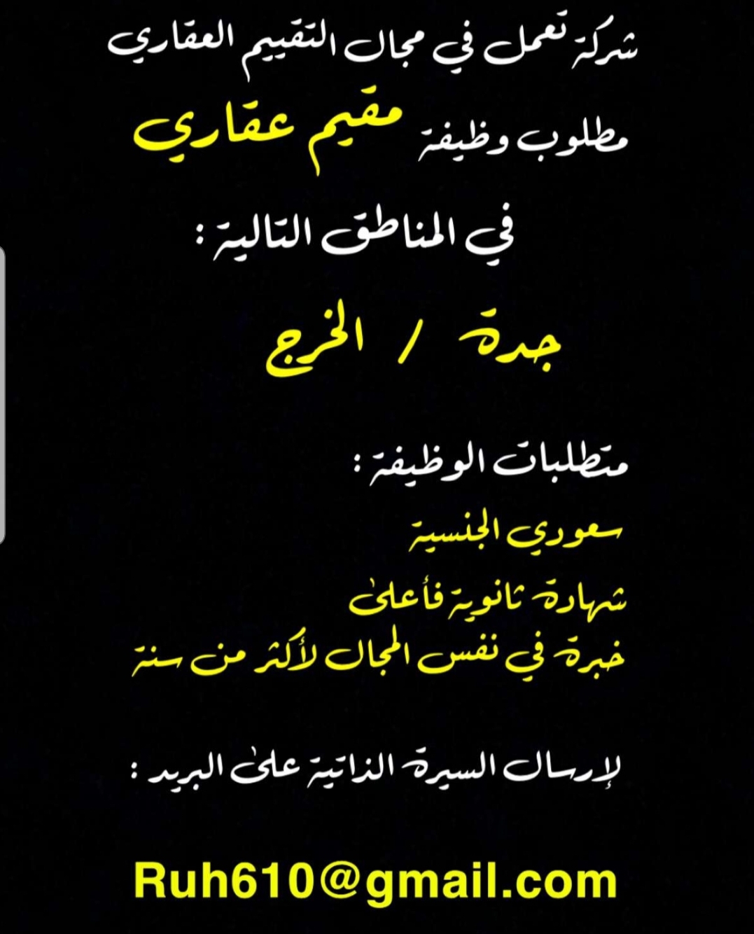 أعلنت شركة تعمل في مجال التقييم العقاري عن وظائف بمسمى