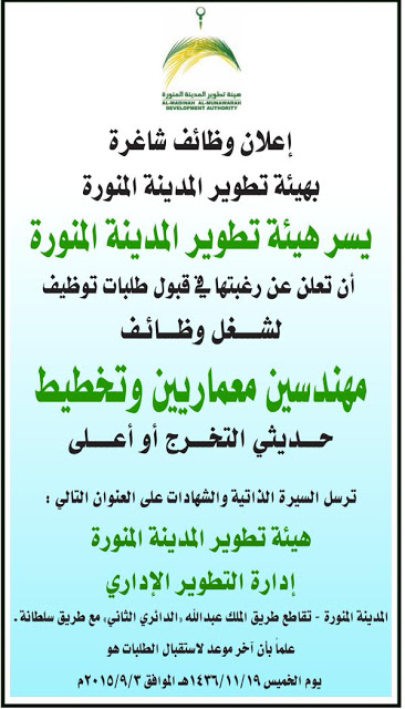 24/08/2015 | أحدث الوظائف اليوم، وظائف المدينة المنورة