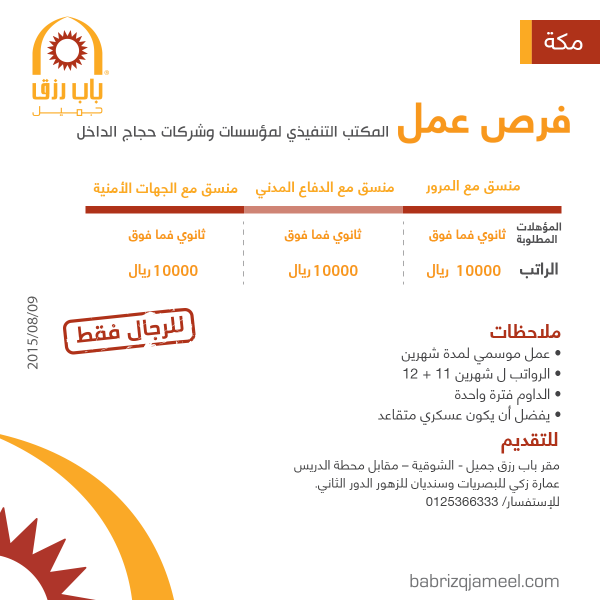 10/08/2015 | أحدث الوظائف اليوم، وظائف مكة المكرمة