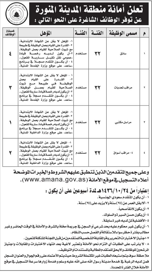 08/08/2015 | أحدث الوظائف اليوم، وظائف المدينة المنورة