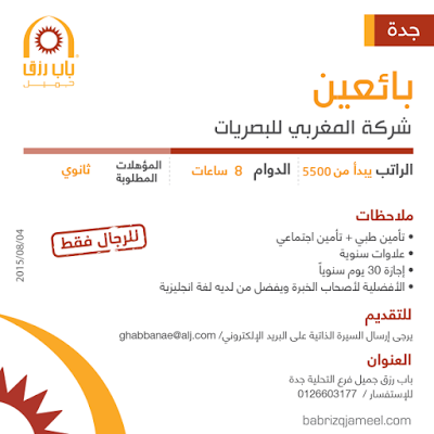 شركة المغربي للبصريات وظائف بائعين رواتب 5500 ريال