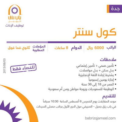 وظائف نسائية كول سنتر في #جدة رواتب 6000 ريال