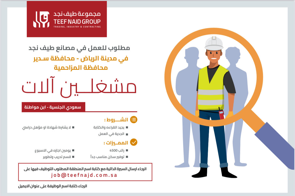 أعلنت مجموعة طيف نجد عن وظائف في مصانع طيب نجد في ( الرياض ، محافظة سدير ، محافظة المزاحمية)