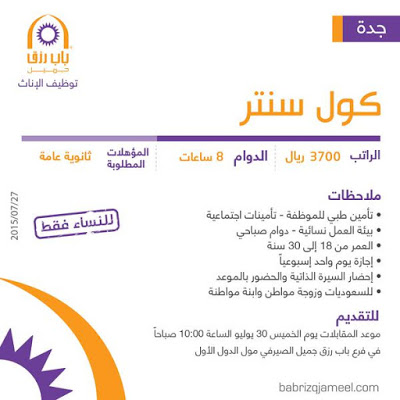 وظائف نسائية كول سنتر في #جدة رواتب 3700 ريال