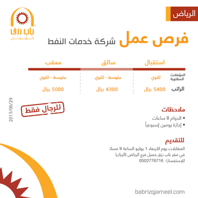 وظائف في شركة خدمات النفط