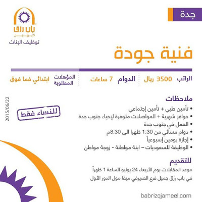 وظائف فنيات جودة في #جدة رواتب 3500 ريال