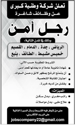 وظائف حراس امن في #الرياض #جدة #ينبع #الطائف #القصيم #الدمام #خميس_مشيط