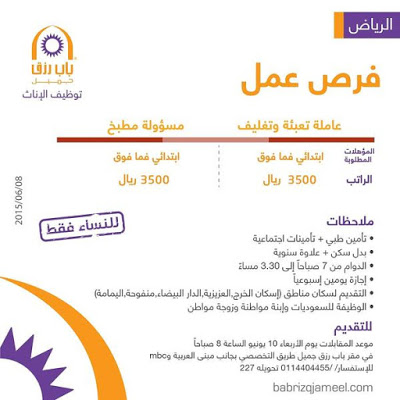 09/06/2015 | أحدث الوظائف اليوم، وظائف الرياض، وظائف نسائية