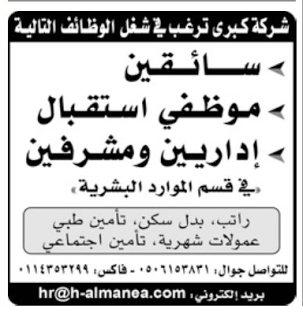 وظائف استقبال وإداريين ومشرفين وسائقين في #الرياض