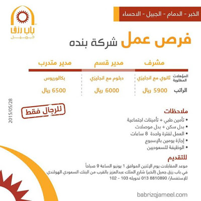 30/05/2015 | أحدث الوظائف اليوم، وظائف الجبيل اليوم، وظائف الخبر اليوم، وظائف الدمام اليوم