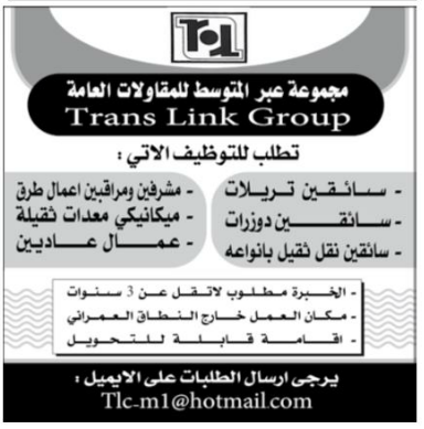 مجموعة عبر المتوسط وظائف سائقين ومشرفين ومراقبين وعمال