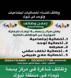 وظائف في #تيمياء اخصائية اجتماعية وتوحد وممرضة وعلاج طبيعي وتخلف عقلي
