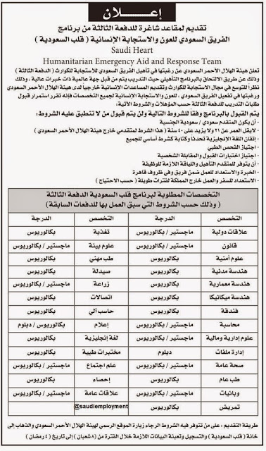 هيئة الهلال الأحمر برنامج قلب السعودية لحملة البكالوريوس والماجستير