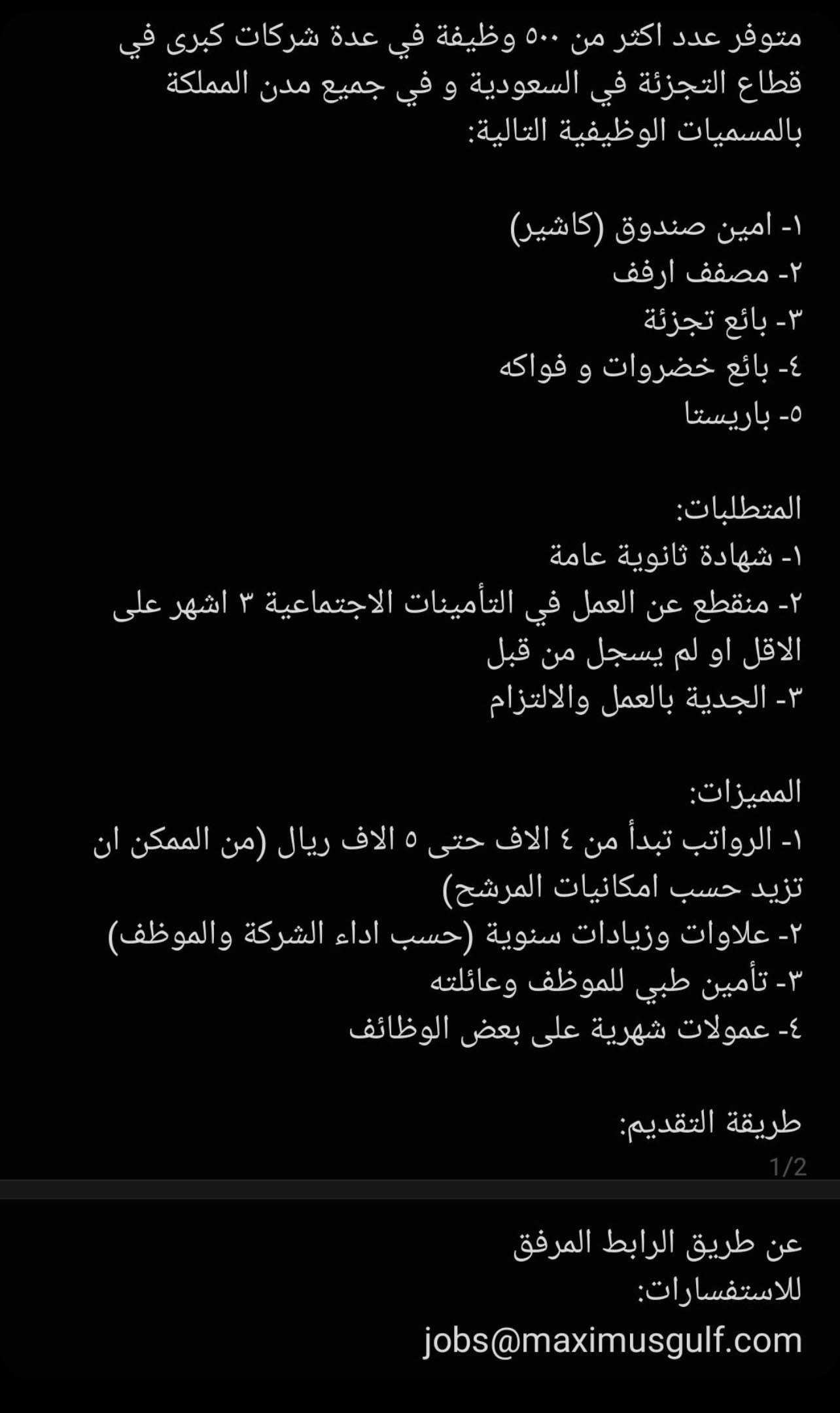 اعلنت maximusgulf عن وظائف نسائية ورجالية في جميع المدن والمحافظات