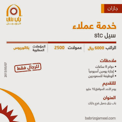 وظائف في #جيزان stc خدمة عملاء رواتب 6000 ريال