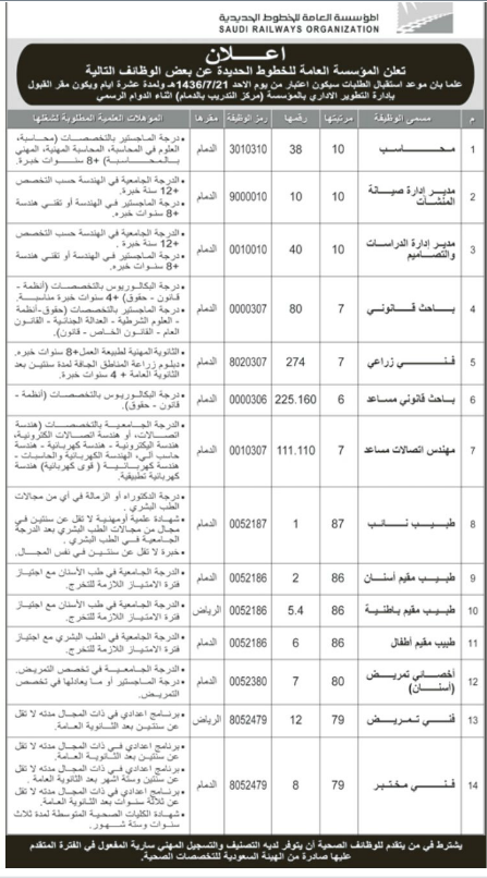 المؤسسة العامة للخطوط الحديدية وظائف إدارية وطبية في #الدمام