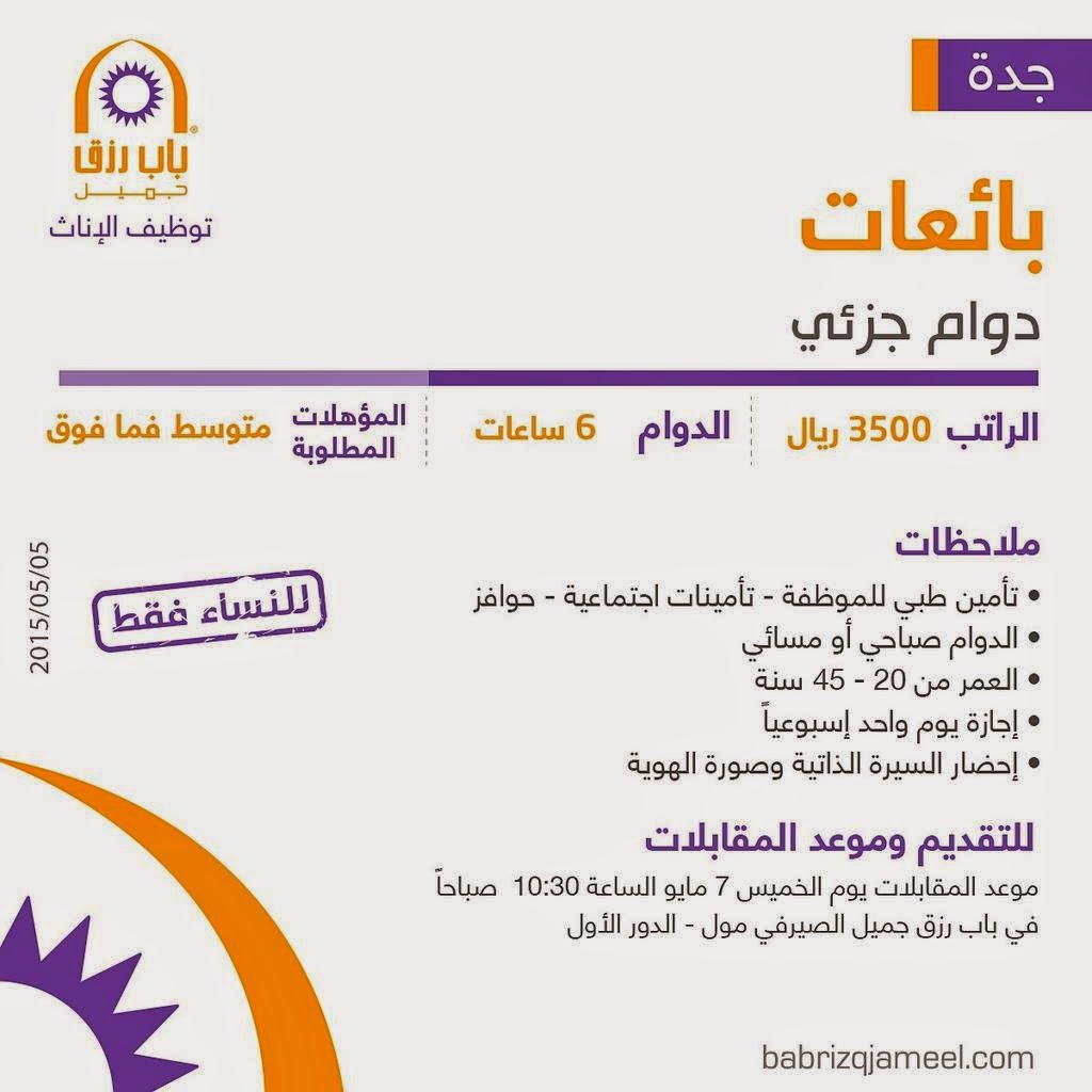 وظائف بائعات في #جدة رواتب 3500 ريال