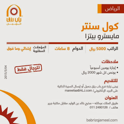 مايسترو بيتزا في #الرياض وظائف كول سنتر رواتب 5000 ريال