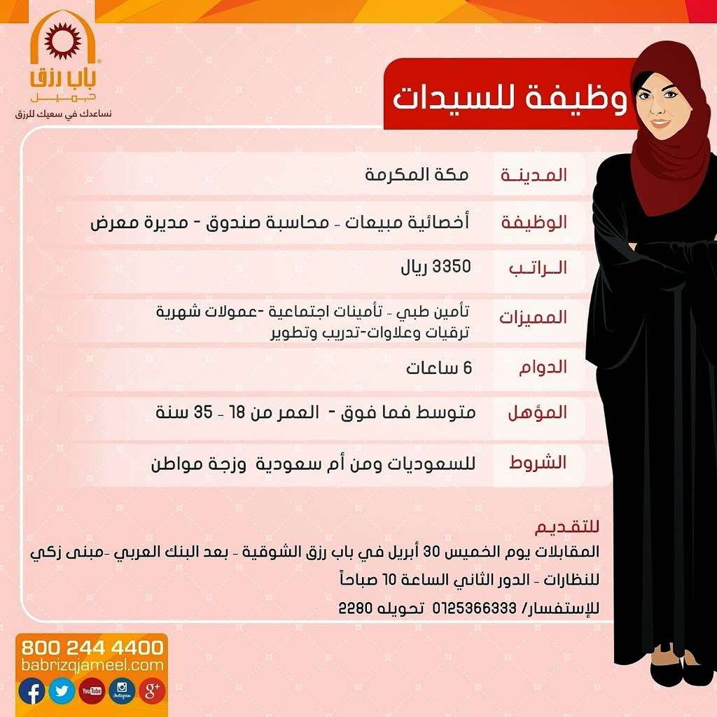 وظائف نسائية في مكة المكرمة اخصائيات مبيعات ومحاسبة صندوق ومديرة معرض