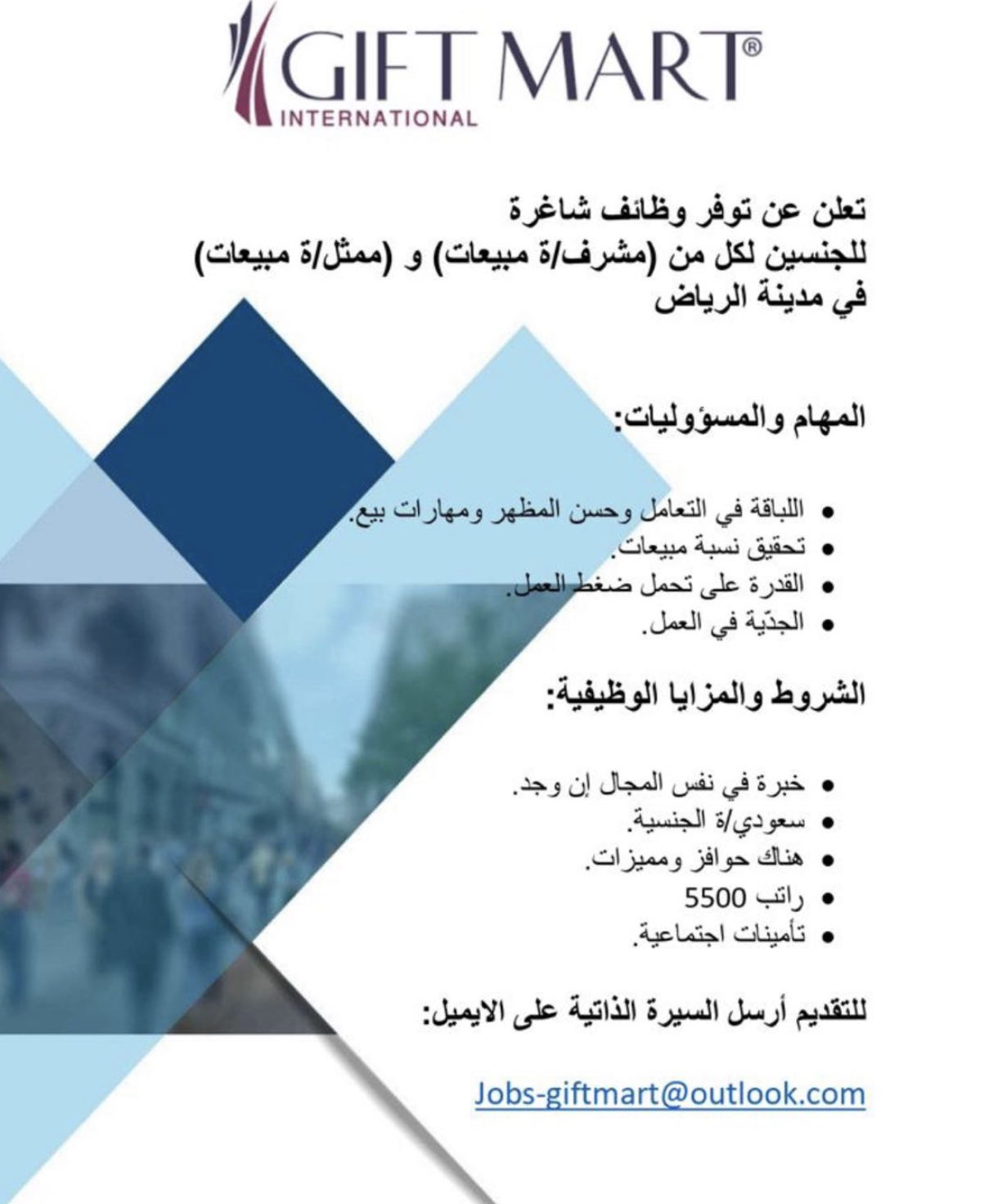 أعلنت شركة gift mart عن وظائف نسائية ورجالية في الرياض