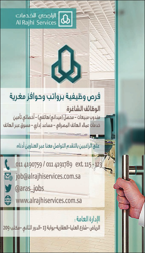 شركة الراجحي للخدمات #الرياض وظائف محصل ميداني واخصائي تأمين ومساعد إداري ومسوق هاتفي