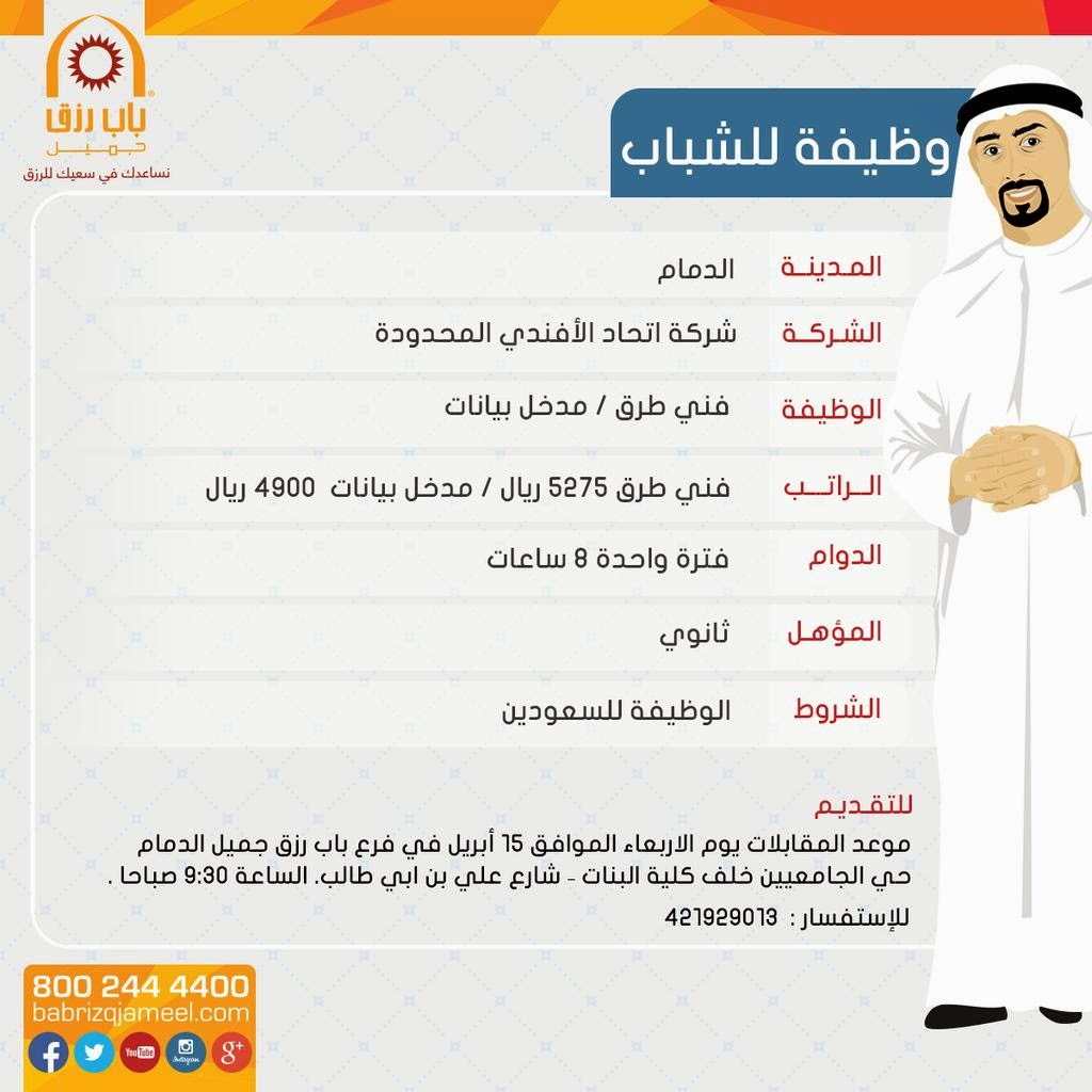 شركة اتحاد الافندي المحدودة #الدمام وظائف فني طرق ومدخل بيانات رواتب 4900 حتى 5275 ريال