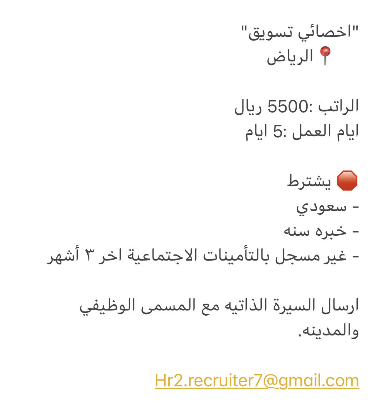 أعلنت احد الشركات عن وظيفة بمسمى اخصائي تسويق وذلك في مدينة الرياض