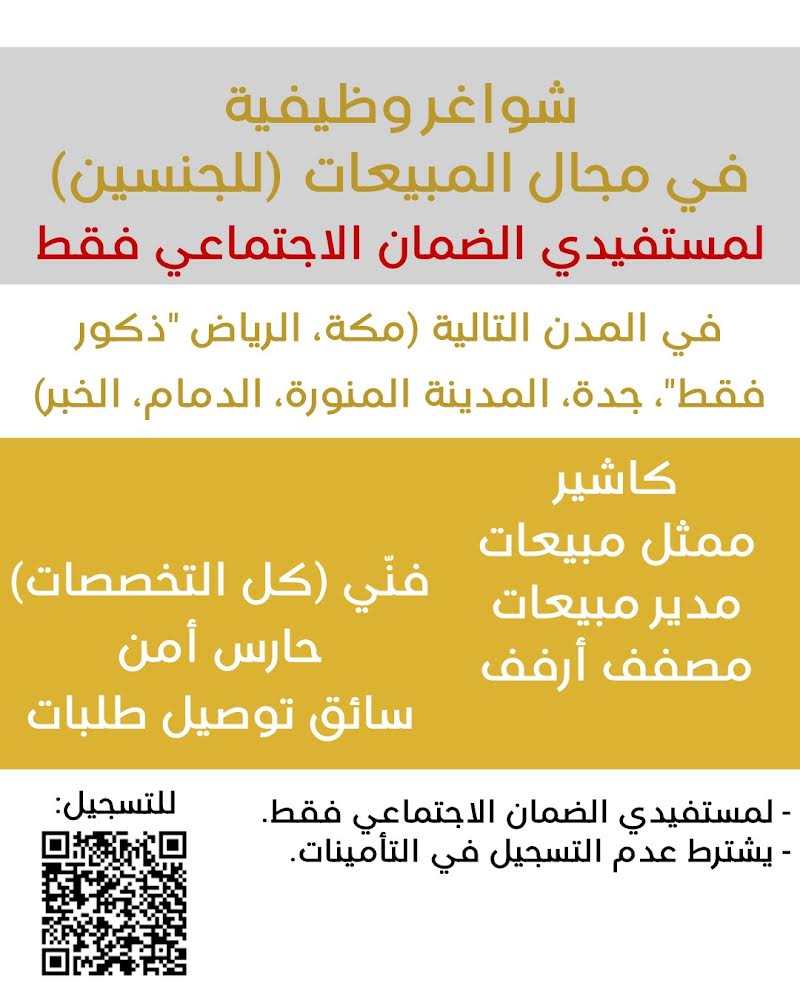 شواغر وظيفية ((للجنسين لمستفيدي الضمان الاجتماعي فقط))🛑