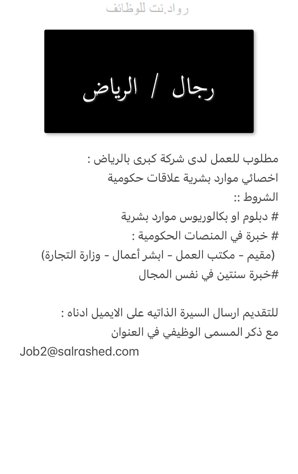 وظيفة اخصائي موارد بشرية علاقات حكومية في الرياض