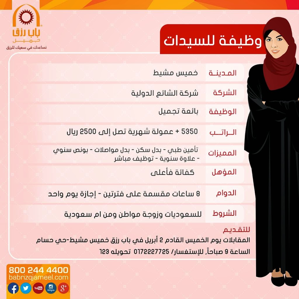 شركة الشائع الدولية وظائف نسائية في #خميس_مشيط رواتب 5350 يال