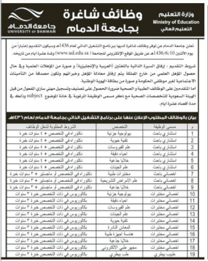 شاهد ايضاً:ـ الشرقية | وظائف الدمام | وظائف الجبيل | وظائف الخبر | وظائف الاحساء