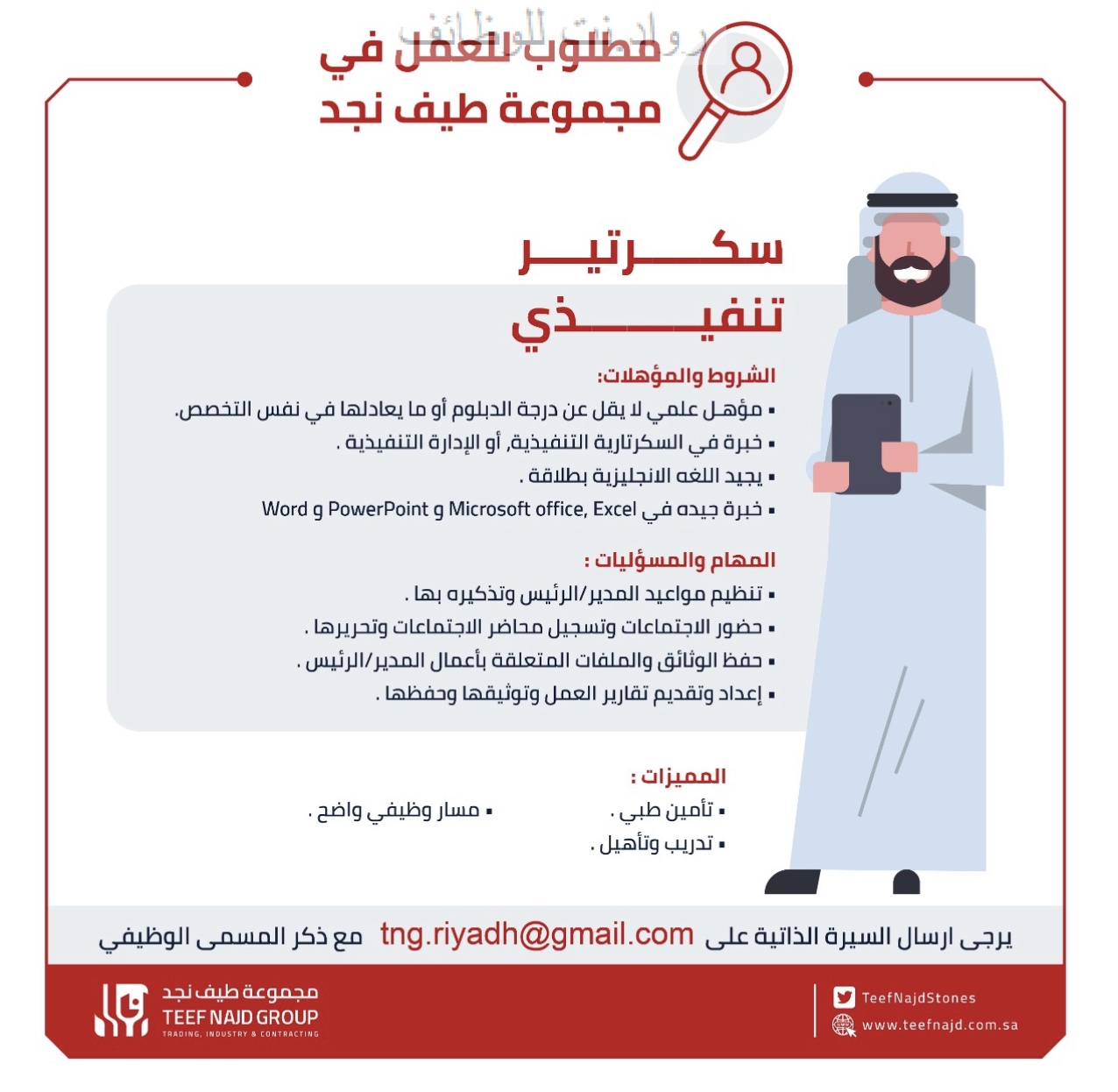 اعلنت مجموعه طيف نجد عن وظيفه بمسمى