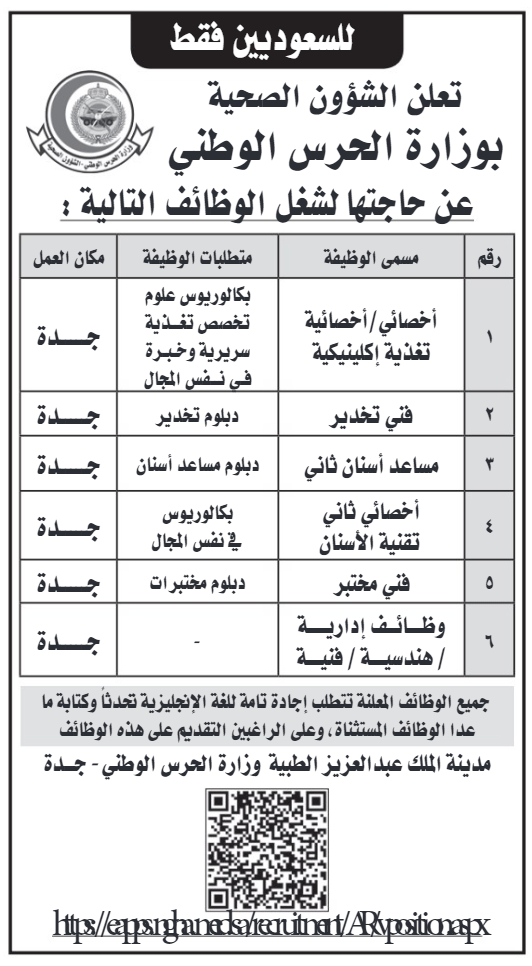 اعلنت مدينة الملك عبد العزيز الطبية عن طرح وظائف شاغرة للجنسين في جدة و نقدم لكم في موقعنا كافة التفاصل المعلن عنها للتقديم