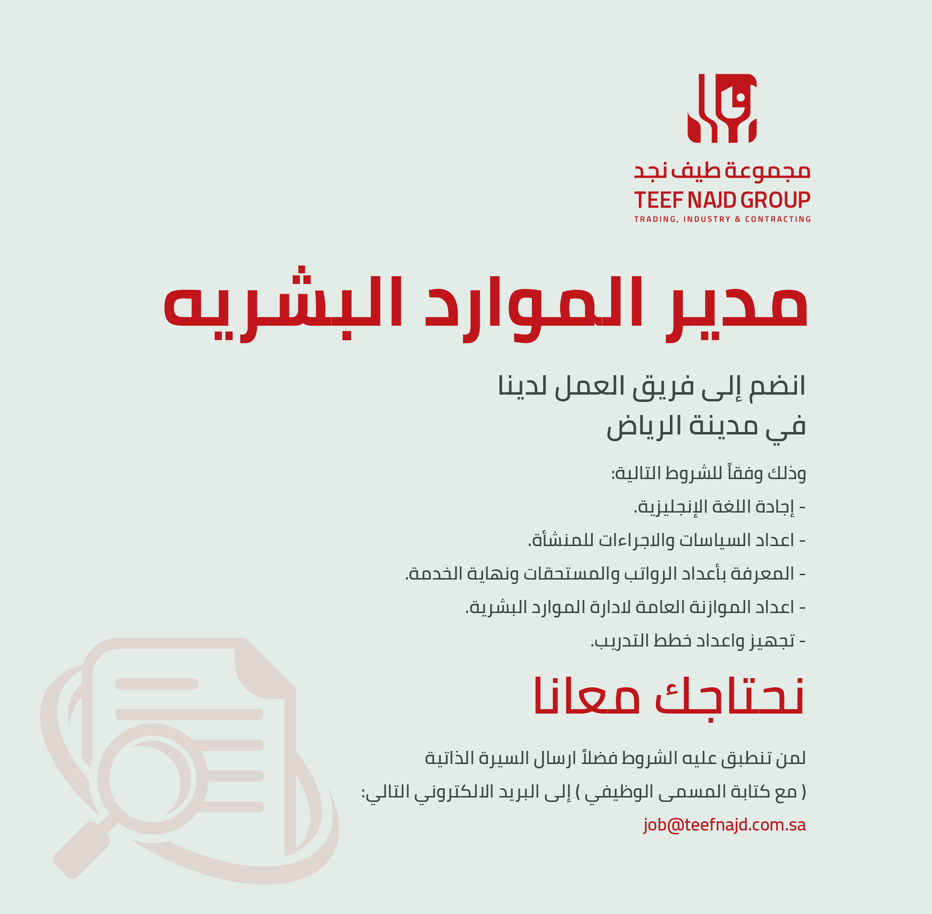 وظيفة مدير الموارد البشرية في مجموعة طيف نجد
