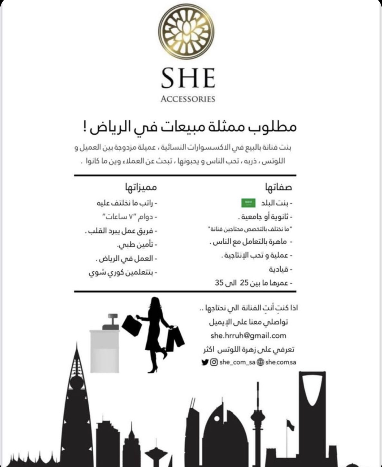 ‏وظائف نسائية في الرياض بمسمى ممثلة مبيعات