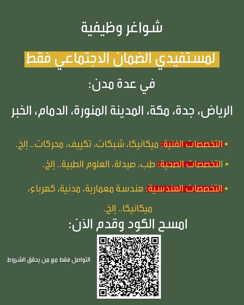 وظائف ‏لمستفيدي الضمان الاجتماعي في عدة مدن