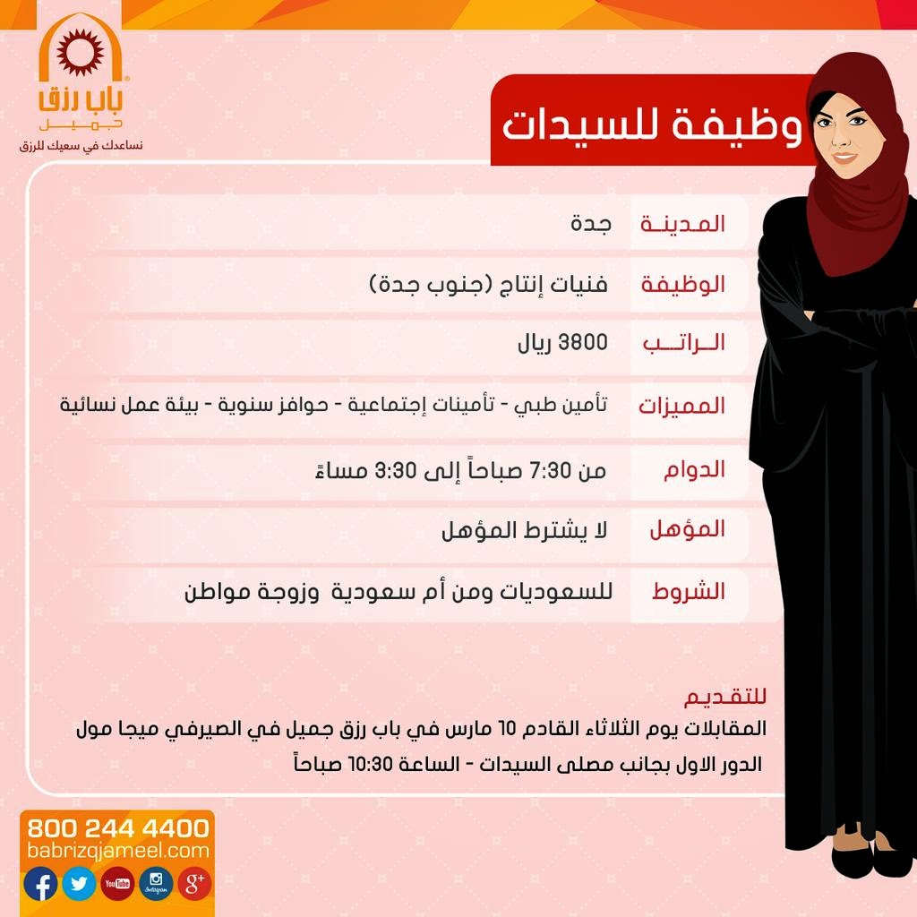وظائف نسائية فنيات خط انتاج في #جدة رواتب 3800 بدون مؤهلات