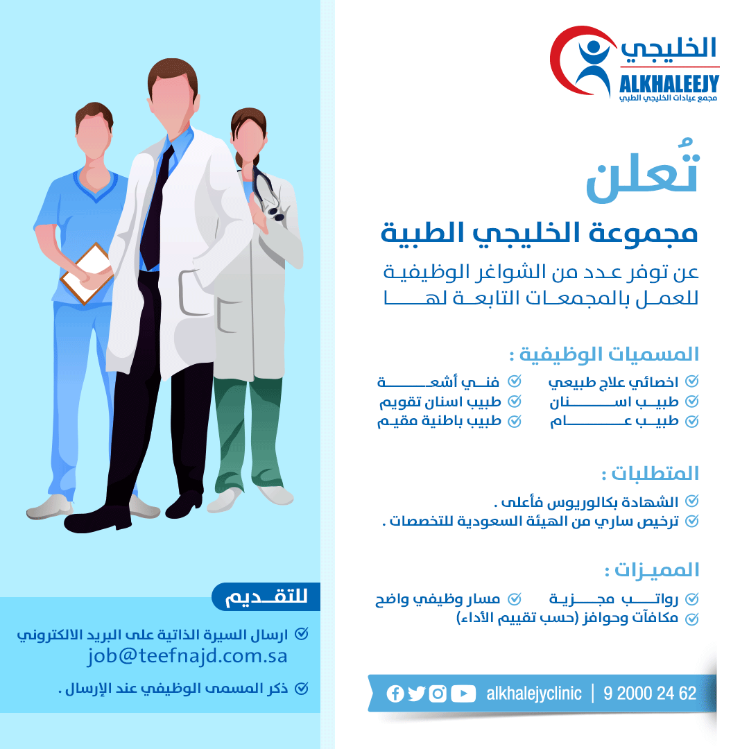 عن توفر عدد من الشواغر الوظيفية للعمـل بالمجمعات التابعـة لهـ L