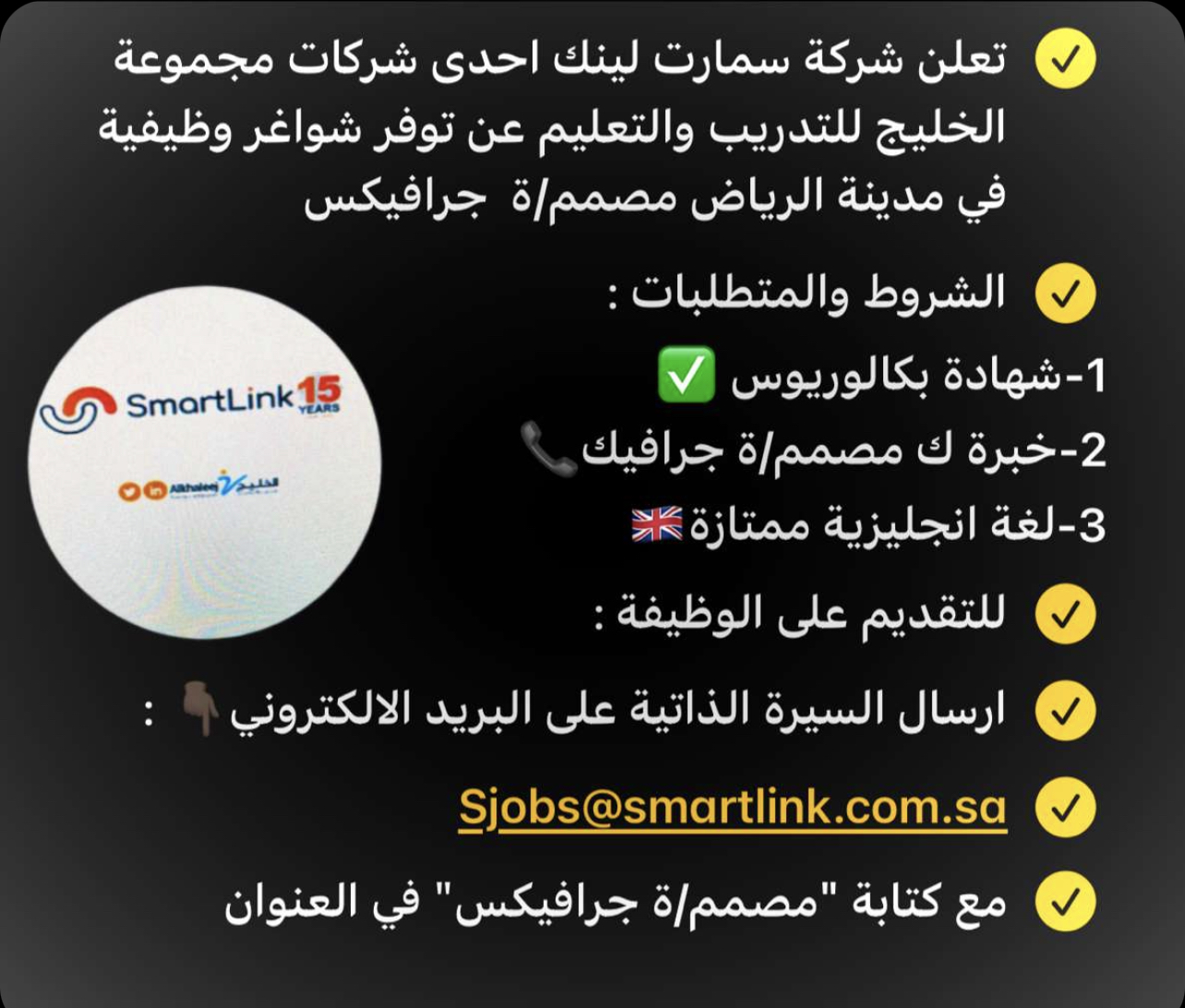 أعلنت شركة سمارت لينك عن وظيفة مصمم/ة جرافيكس